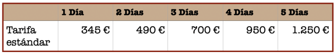 A continuación, les mostramos la lista de precios (para 12 personas):